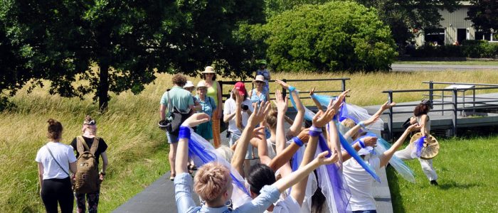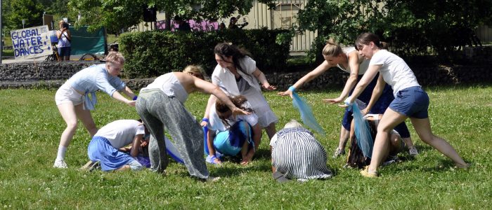 Wasser – die Grundlage unseres Lebens. Wasser ist immer in Bewegung, mensch könnte fast sagen: Es ist stets am Tanzen! Wir stellten hier Tanz, sinnliches Erleben dieses Elements und Umweltbewusstsein in den Fokus. Das passte auch zu unserem Jahresthema in 2025: Eco-Somatics.