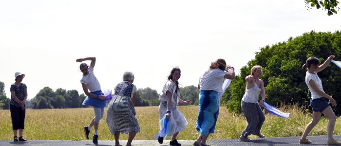 In drei inklusiven Tanztrainings beschäftigten wir uns von April bis Juni mit dem Thema Tanz und Wasser. Die Teilnahme war kostenlos. Es gab eine Projektvorstellung am 14.6. ab 15:00 Uhr im Rahmen des Global Water Dances-Tag am Alten Flugplatz Bonames.