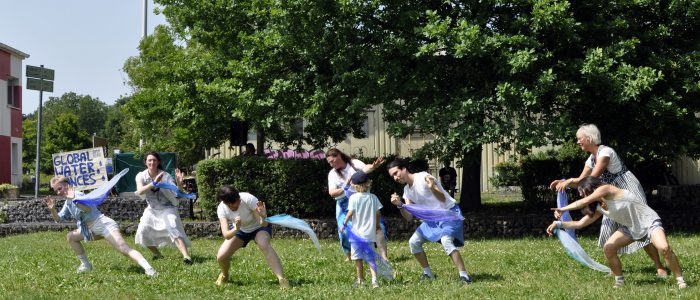 Global Water Dances inszeniert alle zwei Jahre multinationale, gemeinschaftsorientierte Veranstaltungen, die an verschiedenenOrten auf der ganzen Welt stattfinden, um das Bewusstsein für die Problematik von Wasser zu schärfen und Wasser durch Bewegung und Tanz zu feiern. Wir verbinden und unterstützen eine globale Gemeinschaft von Choreograph*innen und Tänzer*innen, um durch die universelle Sprache von Tanz zu Aktionen und internationaler Zusammenarbeit in Bezug auf Wasser zu inspirieren.”